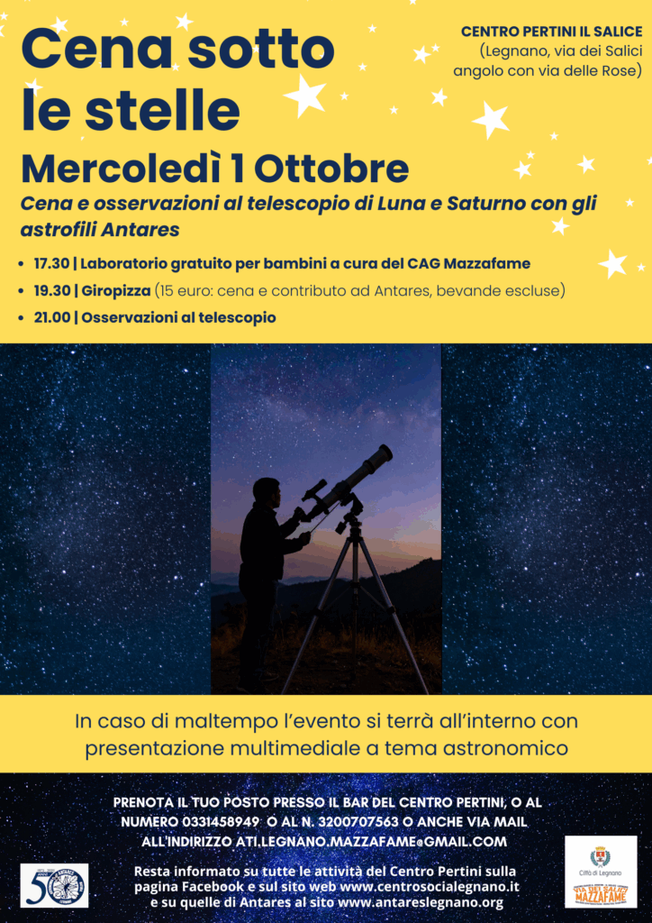 Con gli astrofili di ANTARES ci attende una serata all’insegna dell’astronomia con osservazioni al telescopio di Luna e Saturno