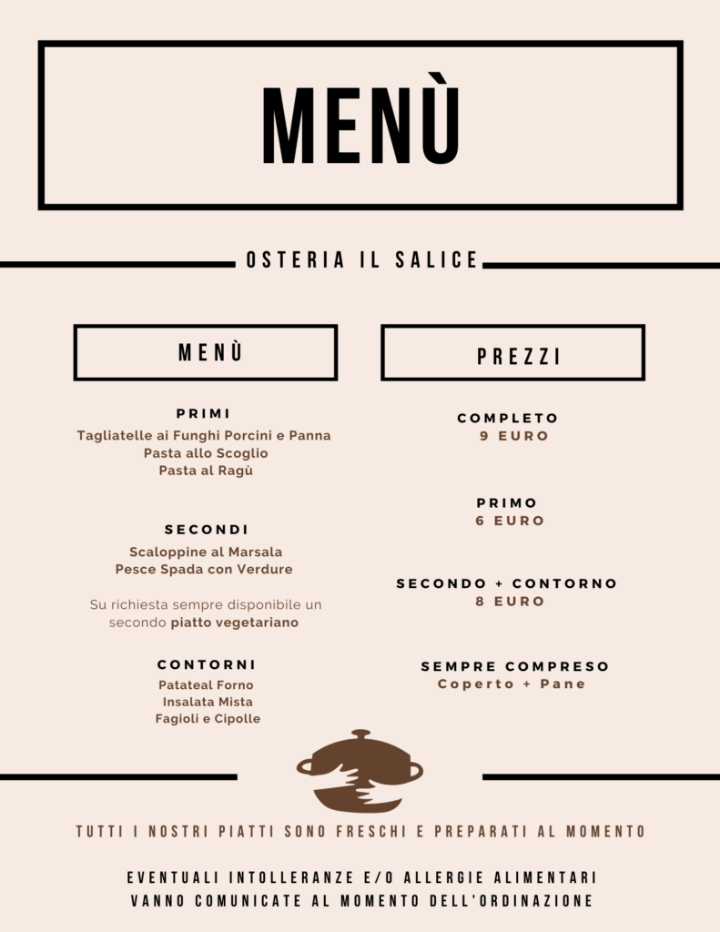 Nuovo menù settimanale (da Lunedì 10 Ottobre a Venerdì 14 Ottobre) Posted on Ottobre 10, 2022 by Max Il menù della nuova settimana? Eccolo! 😋 Ti aspettiamo dal lunedì al venerdì dalle 12.00 alle 14.30 per la tua pausa pranzo! 🍽 ☎️ Per prenotazioni e informazioni puoi chiamare il n. 0331458949 o il n. 3403830971 Altri articoli di interesse: Zumba e Zumba Kids FITNESS Sabato 26.11: JACK THE SMOKER + G KRES + AXOS @SALICE LEGNANO! 1° SETTEMBRE: EIFFEL 65 @ DISTRICT FESTIVAL LEGNANO