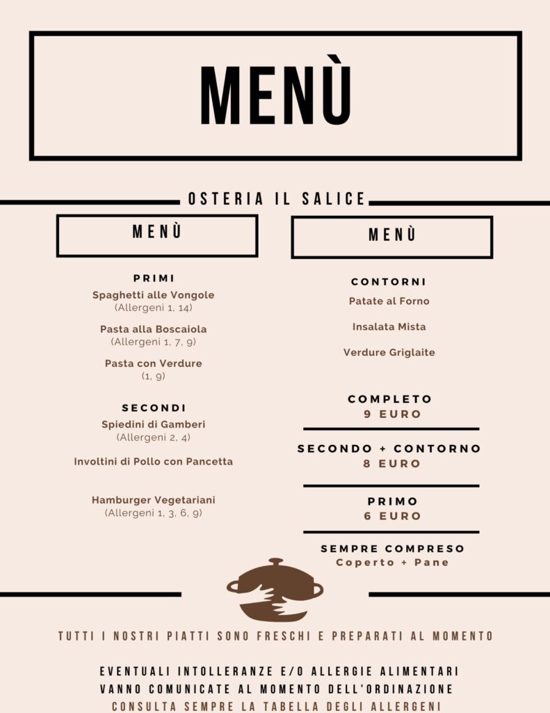 Nuovo menù settimanale (da Lunedì 19 Febbraio a Venerdì 23 febbraio) Posted on Febbraio 19, 2024 by Max Il menù della nuova settimana? Eccolo! 😋 Ti aspettiamo dal lunedì al venerdì dalle 12.00 alle 14.30 per la tua pausa pranzo! 🍽 Per prenotazioni e informazioni puoi chiamare il n. 0331458949 o il n. 3403830971 ☎️ Altri articoli di interesse: Sabato 10 luglio: Tributo a GUCCINI e cena Emiliana Il nuovo menù settimanale per la pausa pranzo (da lunedì 22 a venerdì 26 novembre) Nuovo menù settimanale (da Lunedì 4 Aprile a Venerdì 8 Aprile) Nuovo menù settimanale (da Lunedì 22 Gennaio a Venerdì 26 gennaio)