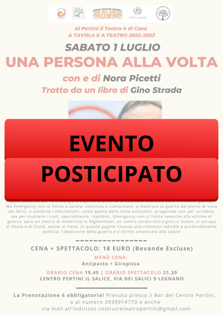 lo spettacolo “Una Persona alla volta” in programma sabato 1 luglio.