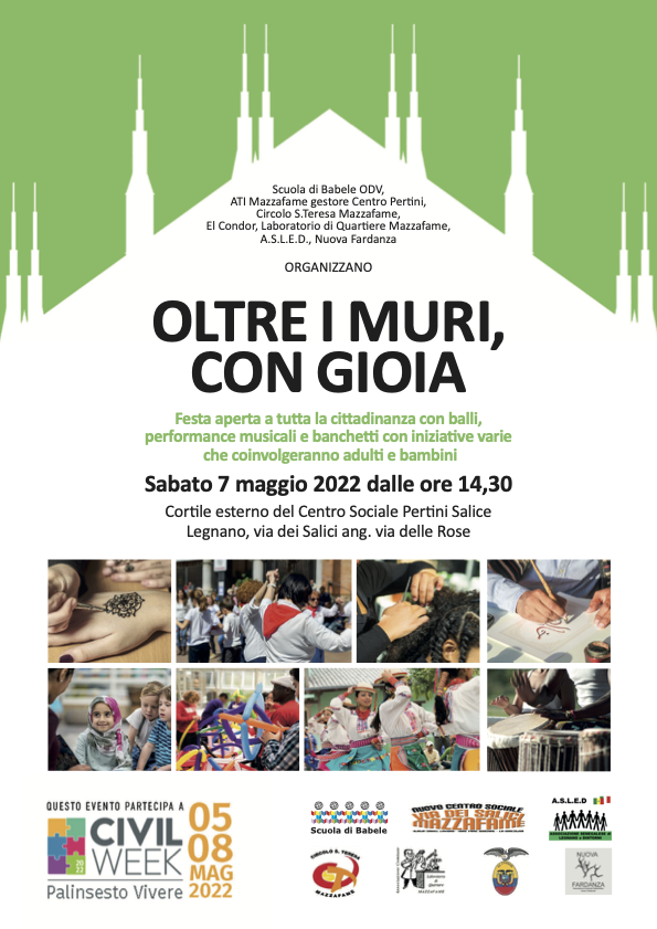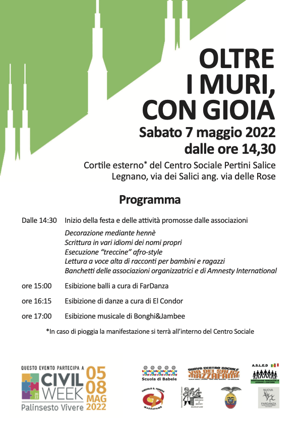 Sabato 7 Maggio – Civil Week Posted on Maggio 4, 2022 by Max Sabato 7 maggio dalle ore 14.30 la CIVIL WEEK arriva anche al Centro Sociale Pertini – Salice! 🌈Dalle 14.30 in poi vi aspetta un bellissimo pomeriggio di musica e divertimento per grandi e piccini! Altri articoli di interesse: Zumba e Zumba Kids FITNESS Sabato 26.11: JACK THE SMOKER + G KRES + AXOS @SALICE LEGNANO! 1° SETTEMBRE: EIFFEL 65 @ DISTRICT FESTIVAL LEGNANO