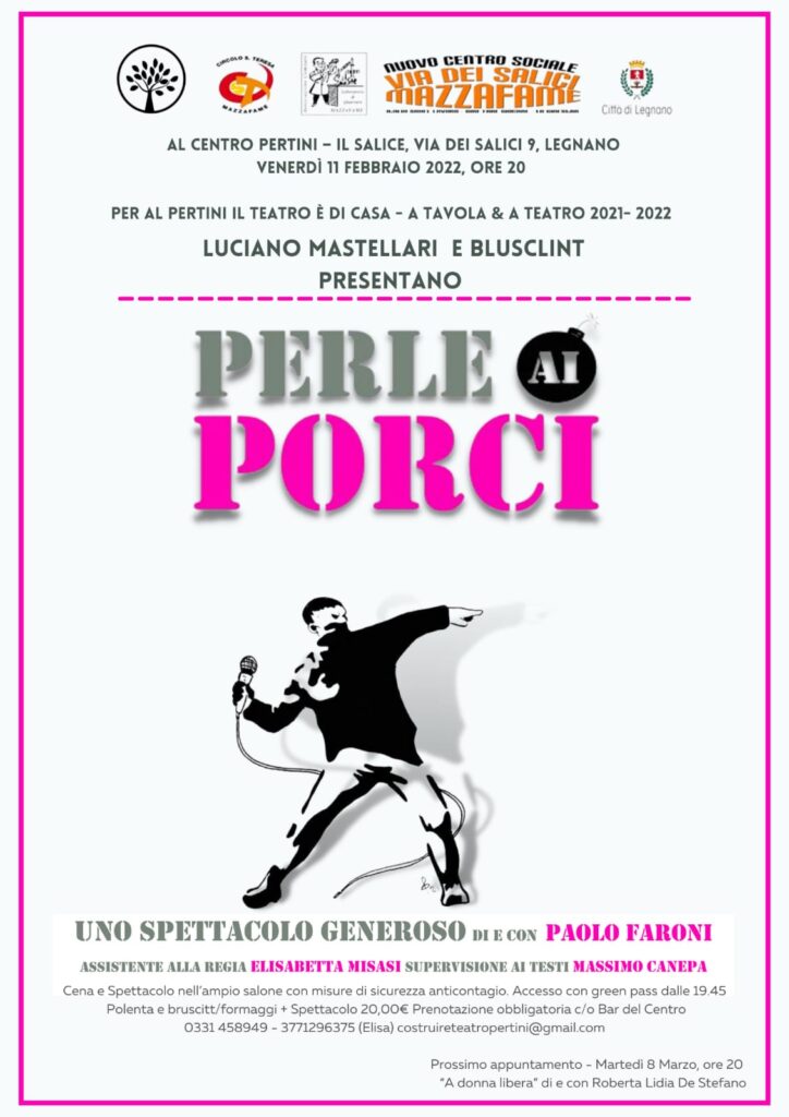Per questo nuovo appuntamento con la nostra rassegna teatrale, verrà messo in scena “Perle ai Porci” uno spettacolo di e con Paolo Faraoni 😍