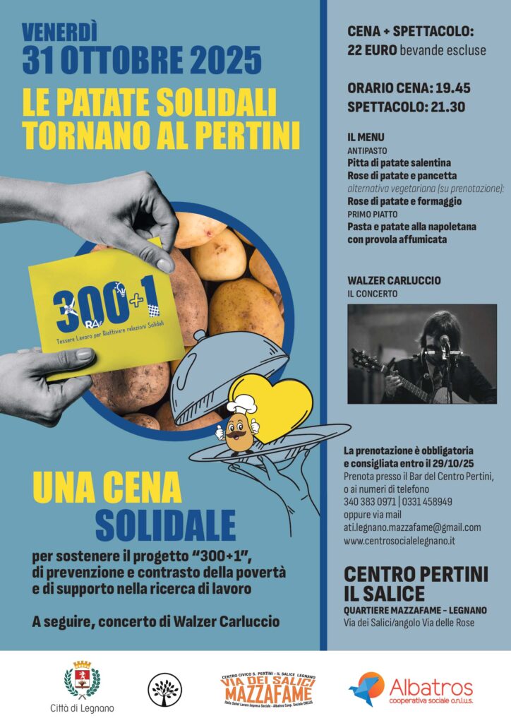 🥔 Cena solidale a sostegno del progetto “300+1”, dedicato alla prevenzione e al contrasto della povertà e al supporto nella ricerca di lavoro