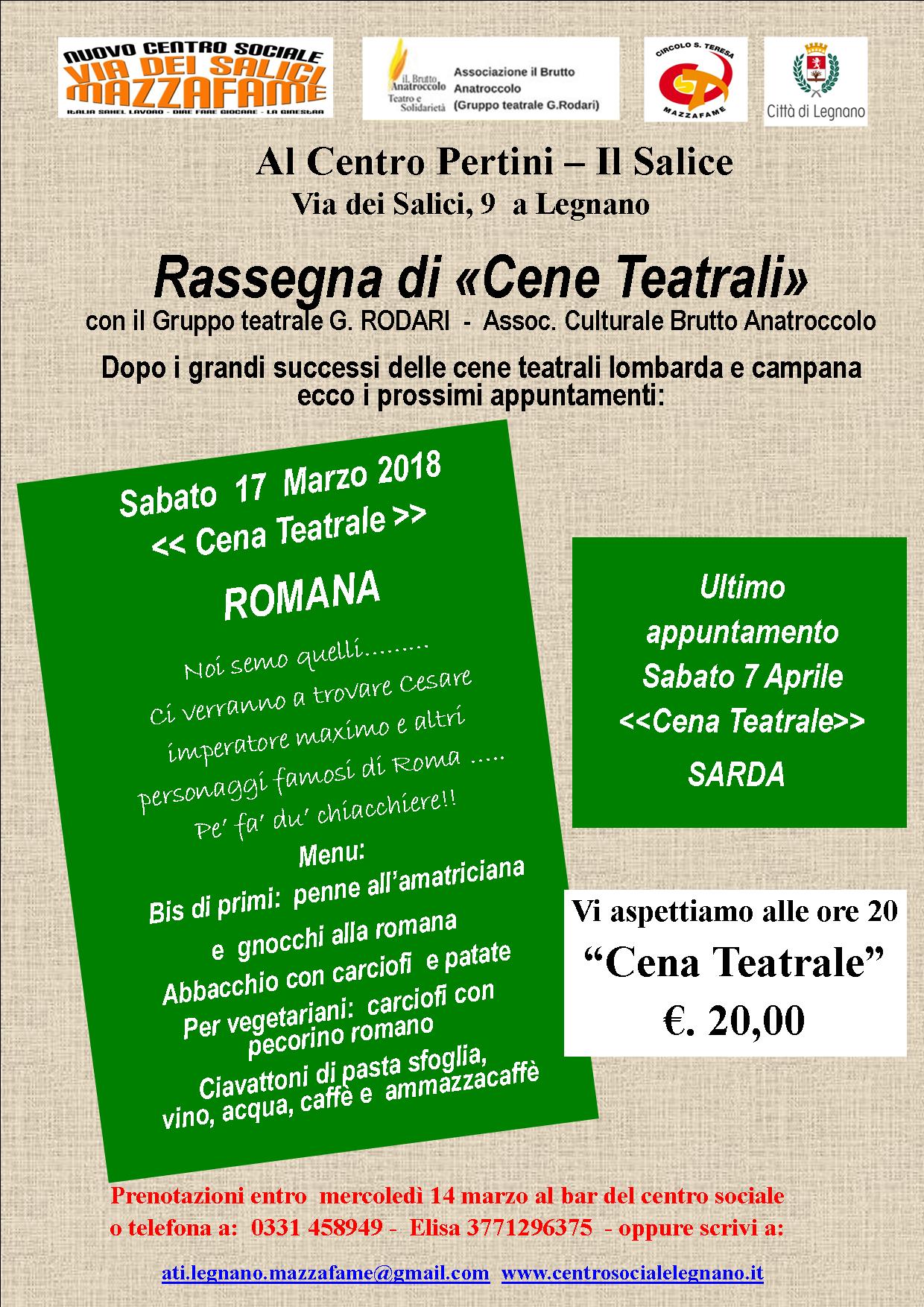 CENA TEATRALE ROMANA Posted on Marzo 13, 2018 by Max Altri articoli di interesse: Zumba! Colazioni al Salice Affitto Salone Salice BE TRASH
