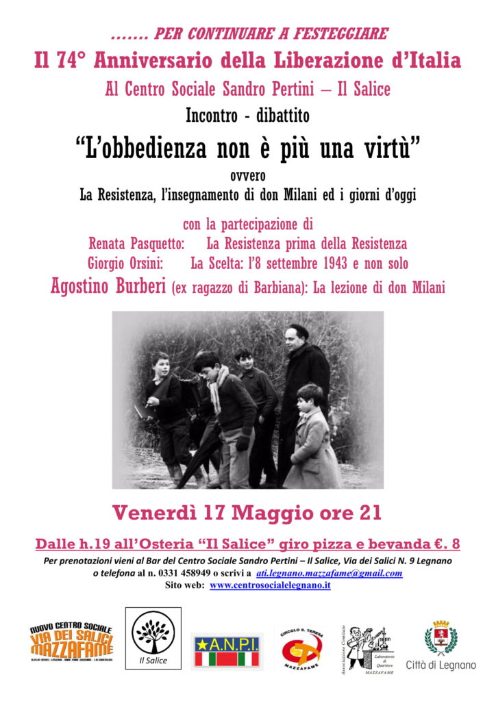 IL 74° ANNIVERSARIO DELLA LIBERAZIONE D’ITALIA Posted on Maggio 10, 2019 by Max E per continuare a FESTEGGIARE………..Incontro/Dibattito Altri articoli di interesse: PRANZO DI FERRAGOSTO CORSO DI PIANOFORTE SERATA DIALETTALE LOMBARDA SABATO 25 MARZO: Baraonda live: Rootical Foundation – Reggae Family since 2006 & Rise UP
